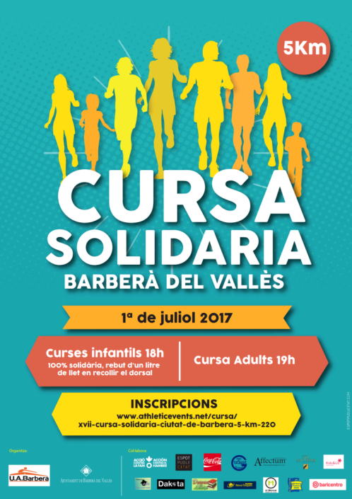 Emmarcada dins les activitats de les festes locals de la ciutat, un any més i ja van 17 estem organitzant la Cursa Solidària de Barberà del Vallés. Una cursa de 5km en un circuit que aquest any té l’al·licient de passar per la mateixa pista d’atletisme.