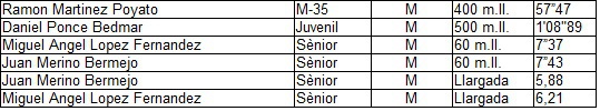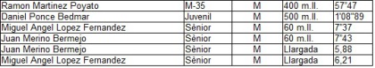 - Daniel Rivero (16'53"), Daniel Ponce (17'51"), Simón Lázaro (19'02"), Roberto Ferrero (19'43") i José Luís Ariza (22'20) en categoria masculina.