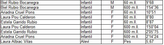 Els resultats dels nostres atletes:
